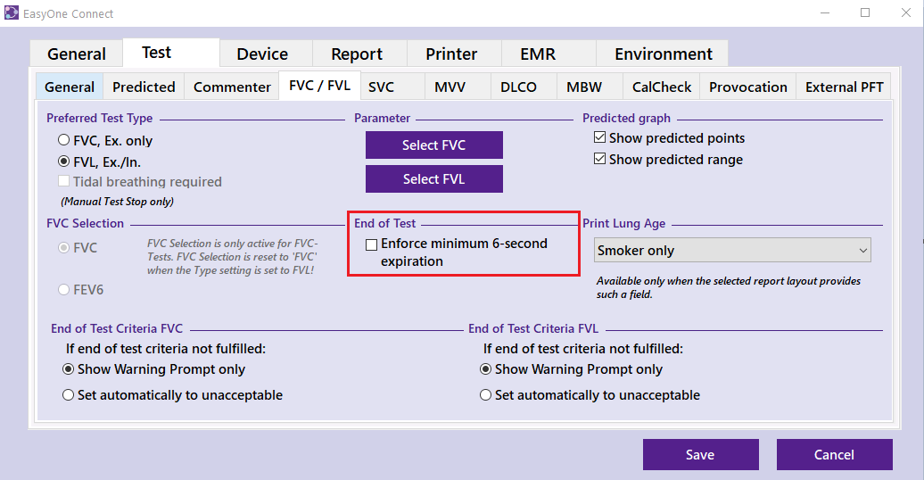 Neu genügt das Erreichen eines Plateaus für ein zufriedenstellendes EOFE (end of forced expiration) und um somit die forcierte Exspiration abzuschliessen. Die neue Norm legt zudem zwei weitere, unabhängige Indikatoren für ein gültiges EOFE fest: eine forcierte Exspirationszeit (FET) von 15s oder das wiederholte Erreichen der gleichen FVC-Werte innerhalb der Wiederholbarkeitstoleranz.