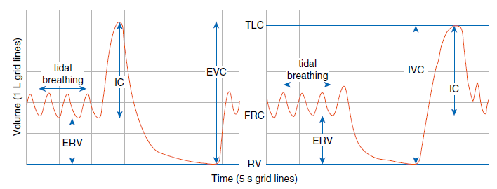Darüber hinaus gibt die Norm 2019 zusätzliche Orientierungshilfen für die Qualitätsbeurteilung beim langsamen VC-Manövern vor. Eine anfängliche Tidal-Atmung gilt beispielsweise dann als stabil, wenn sie mindestens drei Tidal-Atemzüge enthält, bei denen die Schwankungsrate des end-exspiratorischen Lungenvolumens jeweils innerhalb von 15% des Tidal-Volumens liegt. Manche Patientinnen und Patienten werden eine solch stabile Tidal-Atmung jedoch kaum erreichen können. In deren Fall soll der Test nach 10 Tidal-Atemzügen dennoch fortgesetzt werden, allerdings ohne Angabe des IC-Parameters, da dieser nicht mehr zuverlässig wäre.