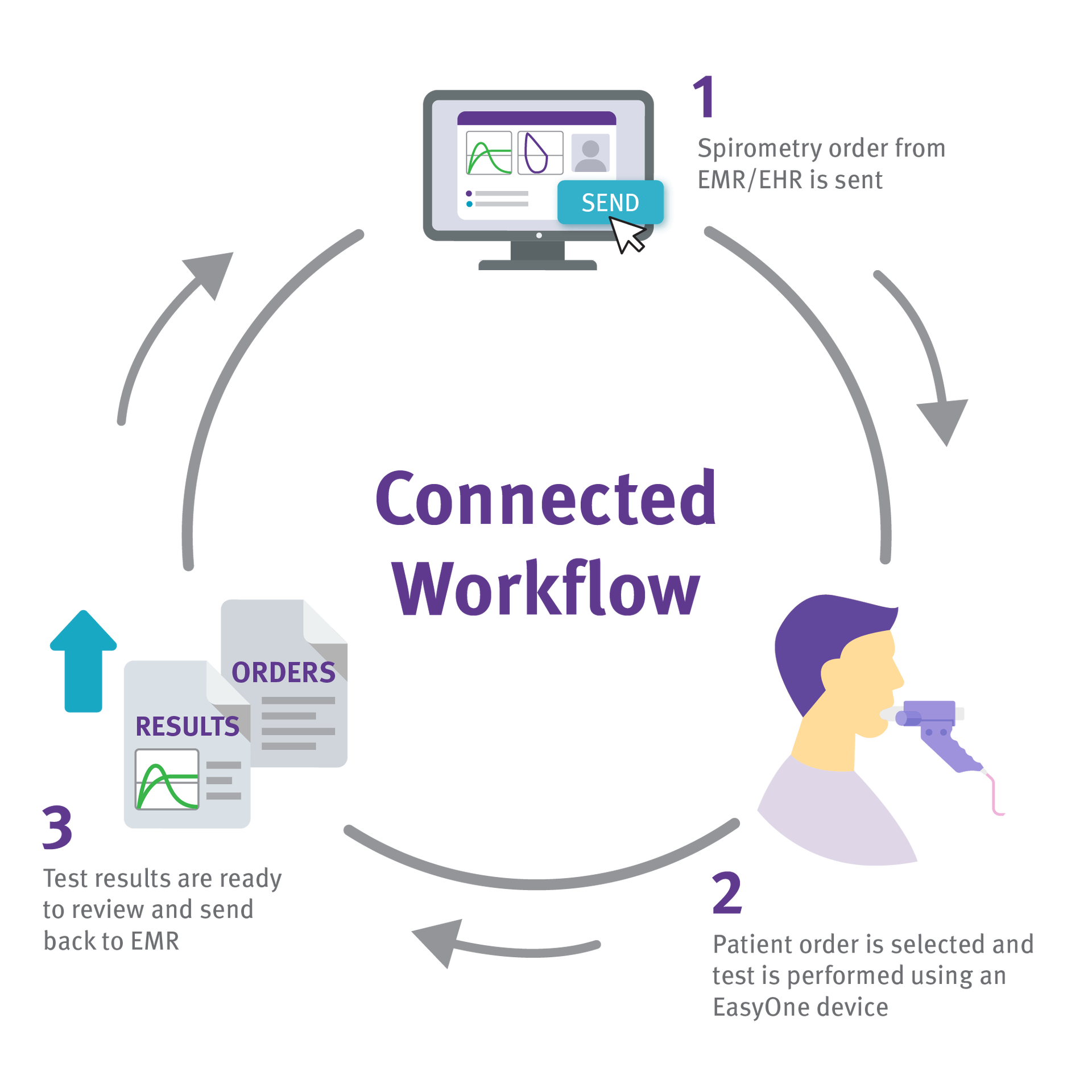 EasyOne Connect bietet Ihnen alles, was Sie für die Lungenfunktionsprüfung brauchen, einschliesslich: motivierende Animationen für Kinder, Bewertung der Testqualität, Auswertung der Testergebnisse, XML-Export, benutzerdefinierte Protokolle für Provokationstests und die praktische Commenter-Funktion.Bi-direktionale Anbindung an führende EMR/EHR-Systeme