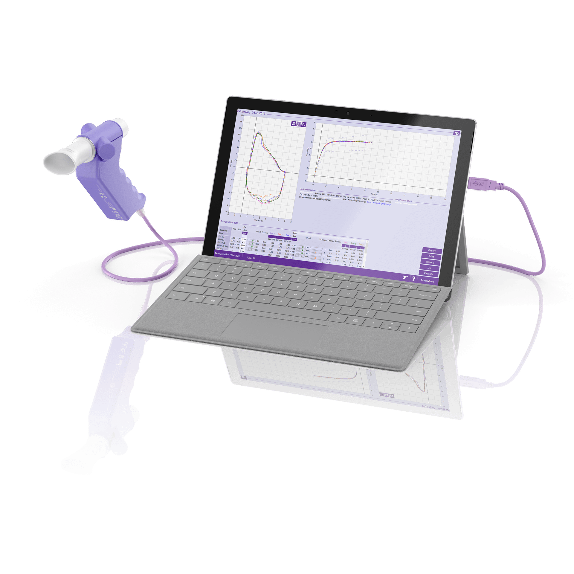 - Conforme aux dernières normes en matière de spirométrie