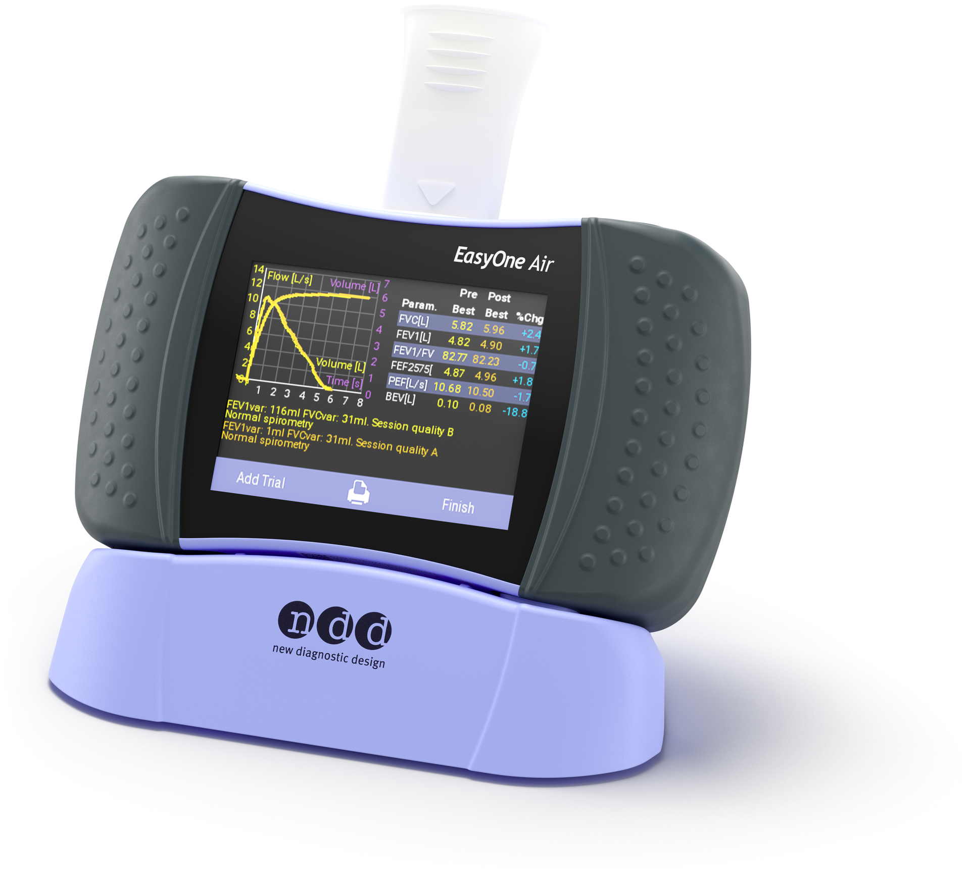 - Interactive software and incentive displays encourages a high-quality spirometry test